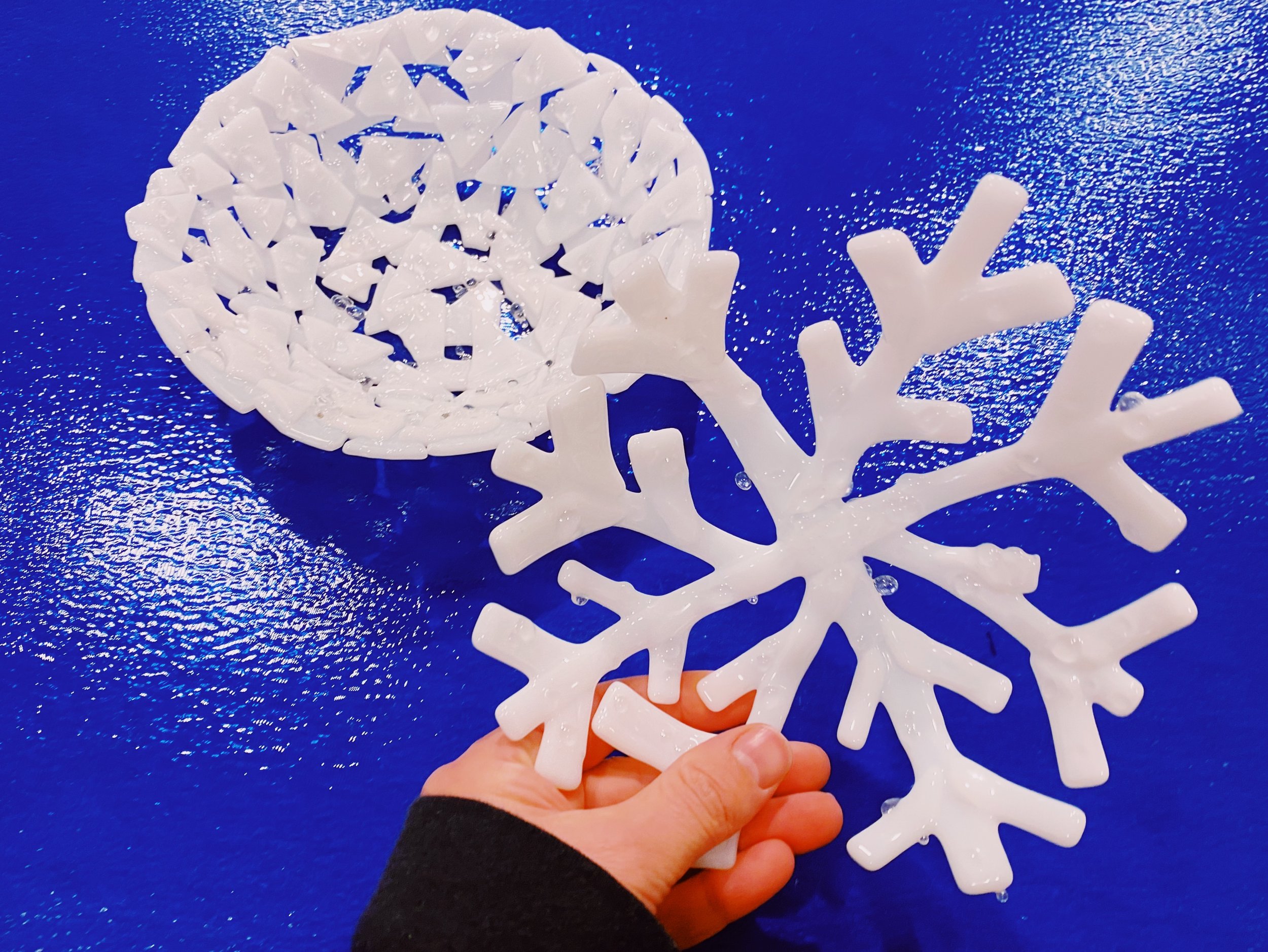 Learn how to design, assemble and break glass to create your own snowflake bowl. Final product is 7” round. Each piece will be fired in the kiln twice. Once flat and once to slump into a bowl shape.